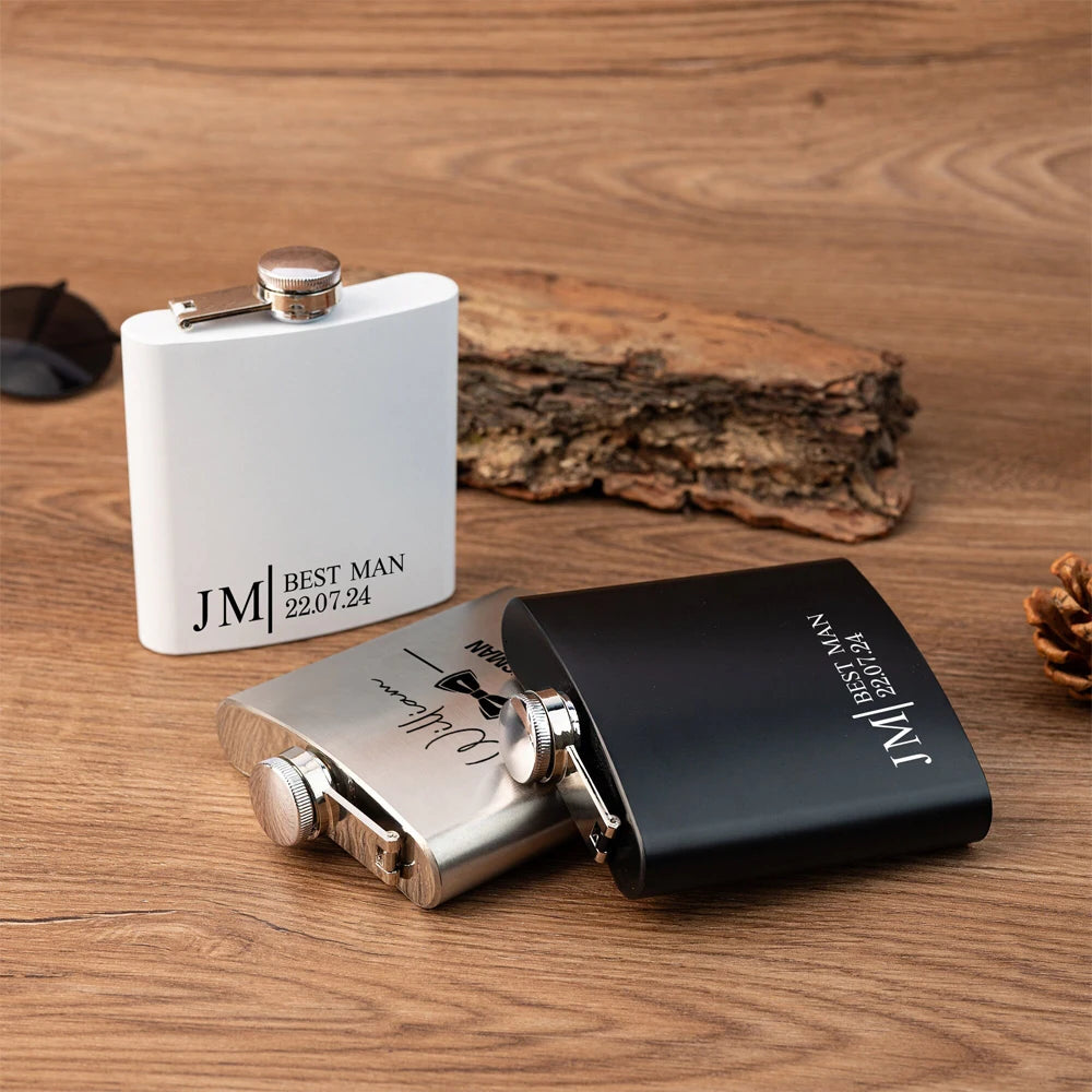 A refined keepsake for life’s most celebrated moments, our Personalised Groomsmen Hip Flask makes a thoughtful gift for groomsmen, the best man, fathers of the bride and groom, or as a cherished memento for the groom himself. Crafted with a sleek 6oz capacity, this flask can be engraved with initials, names, or a date, creating a personalised touch that ensures it will be treasured long after the wedding.