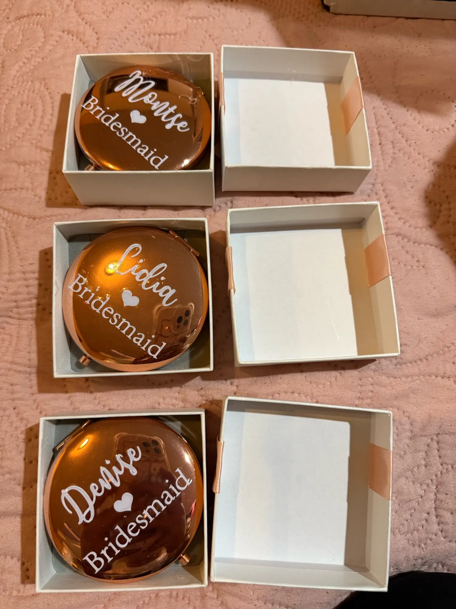 Compact and stylish, this mirror is perfectly sized for pockets or handbags, ensuring it’s always on hand for touch-ups throughout the celebration. Ideal as a wedding favour, bridesmaid proposal gift, or thank-you keepsake, it embodies the charm and sentiment of a bespoke detail that will be treasured long after the day itself.