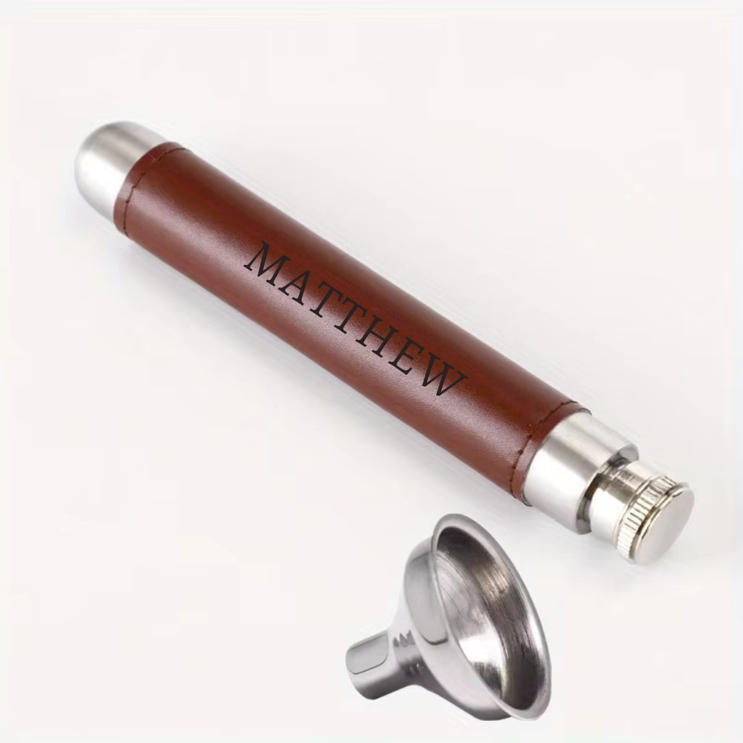 A refined keepsake for weddings and beyond, our Personalised Leather Flask Tube is a meaningful gift for groomsmen, the best man, or fathers of the bride and groom. Crafted with stainless steel wrapped in vegan leather, it combines timeless style with practicality, making it a thoughtful memento for the most celebrated occasions.
