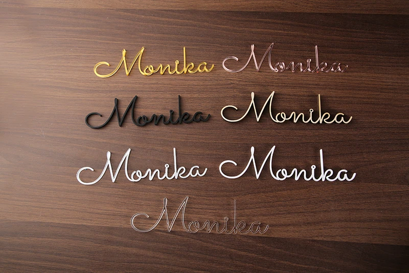 Each name measures about 4 cm high, with acrylic at 0.3 cm thick and wood at 0.5 cm thick, making them both elegant and durable for your table décor.
