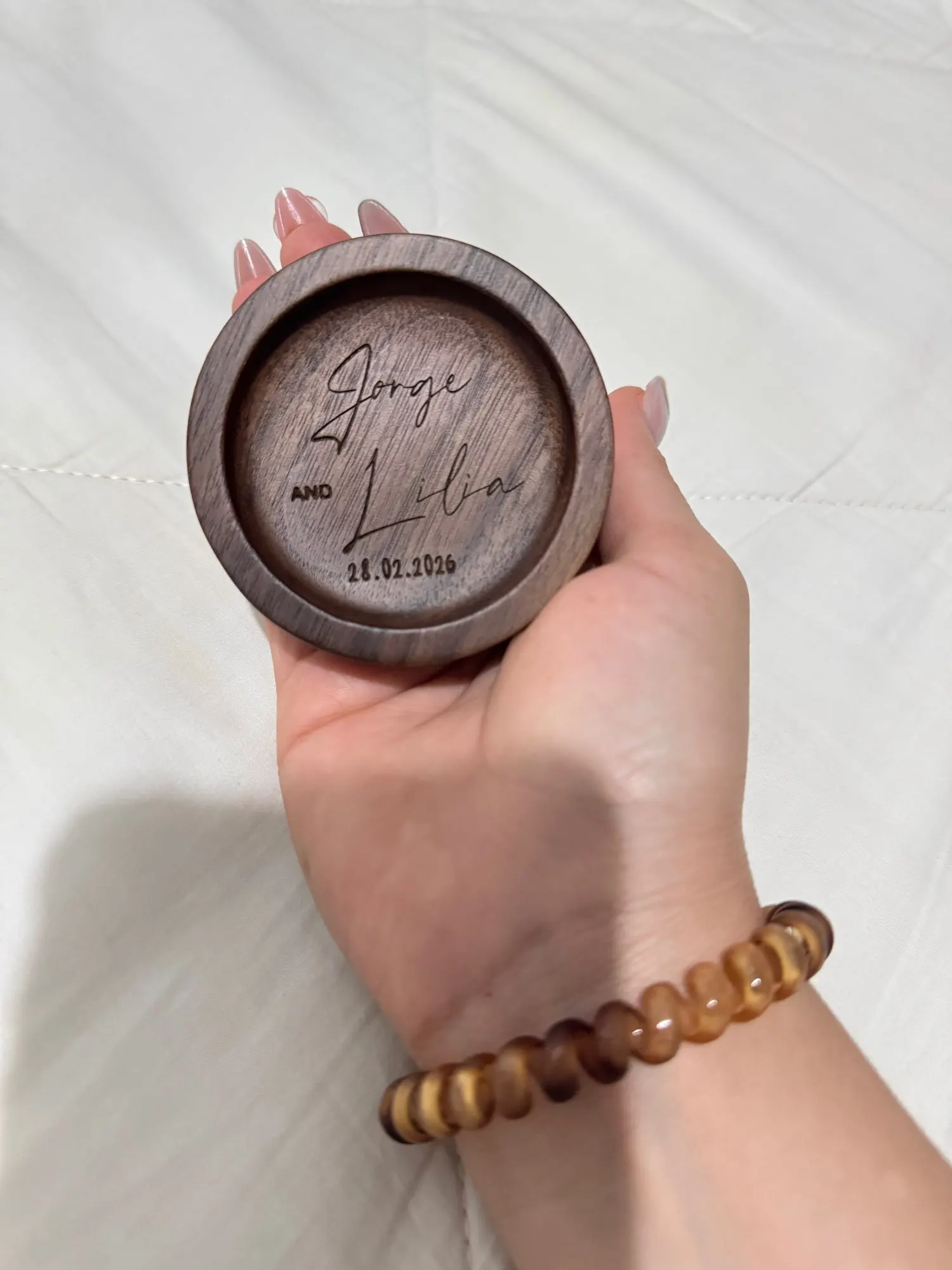 Personalised Wooden Engagement Ring Holder – Custom Ring Dish & Jewellery Tray for Her