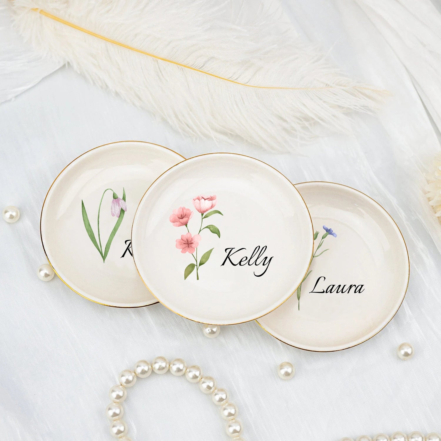Delicately hand-designed with soft watercolour florals, this personalised ceramic trinket dish is both charming and practical. Perfect for keeping rings, earrings, or treasured keepsakes, it brings a touch of artistry and sentiment to your everyday.